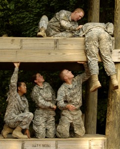 The Red Phase ensures that every new recruit is physically and mentally prepared to start combat basic training and initially consists of orientation, haircuts, and uniform issue. Next, official training begins with an introduction to physical fitness, Drill and Ceremony (D&C), Military Customs and Courtesies (MC&C), Nuclear Biological and Chemical Defense (NBC), Landmine Defense, and rappelling the Confidence Tower. The White Phase teaches vital Soldier skills and instills confidence in each new recruit. Physical training is more intense and recruits are taught more advance Drill and Ceremony maneuvers. Training also includes a Tactical Foot March, Basic Rifle Marksmanship (BRM), Engagement Skills and Situational Training Exercises, Field Training Exercises, Confidence Obstacle Course, and a Tactical Foot March. The Blue Phase is the final phase and it allows recruits to test their red and white phase training by negotiating the Night Infiltration Course, as well as U.S. Weapons and field training. Recruits will also be tested on their ability to complete a 10KM and 15KM Tactical Foot March with gear.