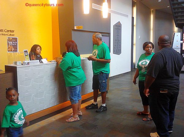 The front desk attendant – Monique – was very cordial, pleasant, and polite; however, I was not too happy that she charged me $8 like everyone else in our group. Tour guides are often comp’d at these type venues. I was also disappointed when she could not identify nor provide me with a guide that identified each of the person(s) featured on the entrance wall. It would have been great to have that resource and for each of the person(s) to be numbered for easy identification and a short narrative about what they are known for would have come in handy as a teaching tool. One of our very observant family reunion guests pointed out that some of the names were lightly etched on the wall behind the glass exhibit. This was somewhat helpful – if you noticed the names -- but the fact that the featured person(s) were not numbered created an additional challenge to those that could not identify them from their picture alone; notable persons like W.E.B. (William Edward Burghardt) DuBois, Dred Scott (Sam), Frederick (Augustus Washington Bailey) Douglass, Sojourner (Isabella Baumfree) Truth, Marcus (Mosiah) Garvey, W.C. (William Christopher) Handy, Paul (LeRoy Bustill) Robeson; George Washington Carver, Angela (Yvonne) Davis, James (Joseph) Brown, Jr., Dr. Maya Angelou (Marguerite Annie Johnson), Michael (Jeffrey) Jordan, and Oprah (Gail) Winfrey, to name a few.