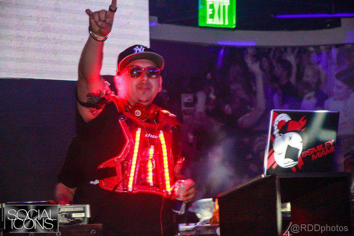 DJ Smiley Miami - It's a mix between Steve Aoki and DJ A.M.; I like Steve because he's one hell of a performer. He keeps you engaged and asking what's next and DJ A.M. because his mash-ups are insane and also the way he could rock any genre and mix in so clean.