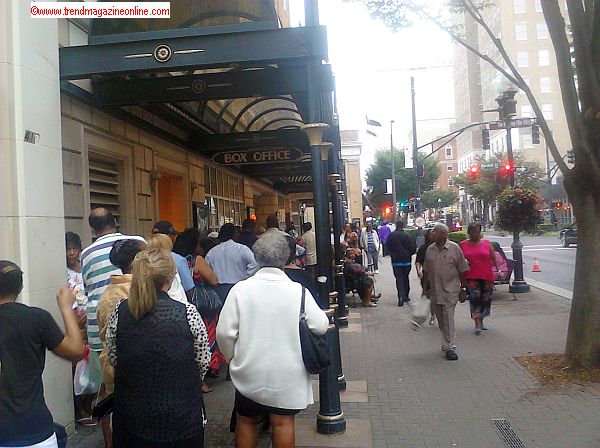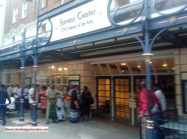 I arrived at the center at approximately 7 PM for the 8 PM play/show and there was a queue of equally eager theatre-goers and fans already lined up outside along South Main Street. I was all set to board the bus to the campus of UNCSA when I just happened to ask some folks outside the Marriott (Host hotel) who thankfully pointed me in the right direction to the downtown location instead. Whew! While in line, I actually met some hometown folks from Winston-Salem; two Black and two white women. The doors were opened precisely at 7:30 PM and by that time the line had snaked around the block for this very popular and much anticipated play/show.