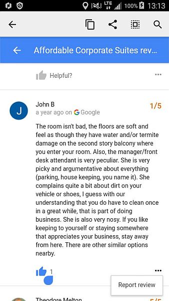 was the subject of those bad online reviews mentioned above.