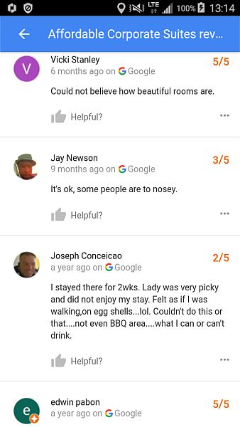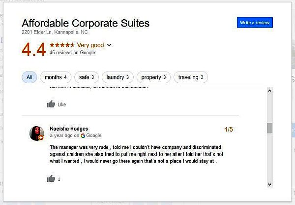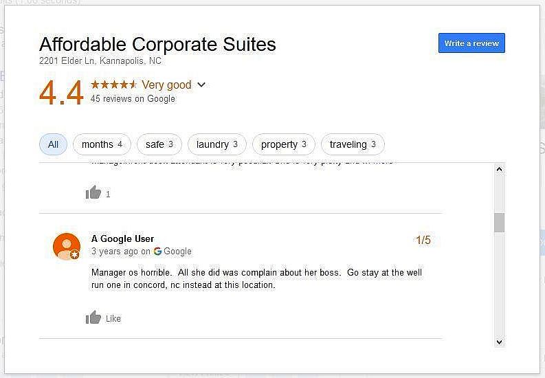 feedback to a site whose tradename (Affordable Corporate Suites) is in stark