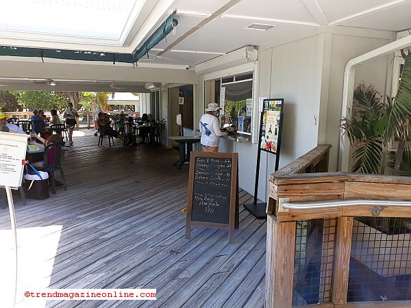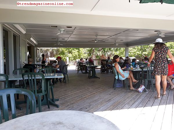 eatery that comes complete with plastic beach type furniture and ceiling fans