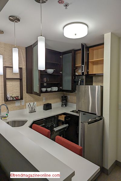 One of the standout features of the Residence Inn was its in-room kitchen, tailored for travelers seeking flexibility and convenience π . The kitchen came fully equipped with a family-sized refrigerator featuring a built-in ice maker βοΈ, a two-burner stove, and a spacious microwave. A dishwasher, complete with dishwashing pods, made cleanup effortless. The thoughtful inclusion of dishwashing liquid, garbage disposal, and kitchen towels underscored the attention to detail.
